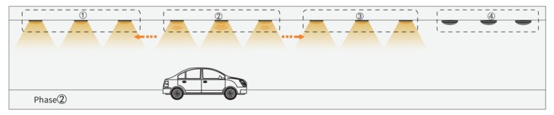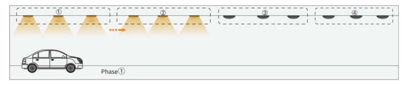 2. ເວລາຂີ່ລົດໄປຜ່ານ Group-Group, Sensor Group2 ຈະເປີດໃຊ້ກຸ່ມອື່ນ 1 ແລະ Group3 ຕໍ່ໄປ. ແສງສະຫວ່າງອື່ນໆແມ່ນຍັງຫມົດໄປ.