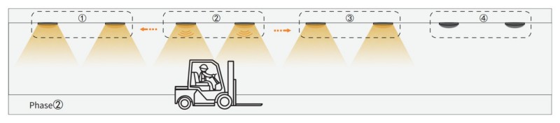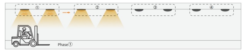 2. ເມື່ອວັດຖຸປະສົງຜ່ານ Group2, Sensor Group2 ຈະເປີດໃຊ້ກຸ່ມ 1 ແລະ Group3 ຕໍ່ໄປ. ແສງສະຫວ່າງອື່ນໆແມ່ນຍັງຫມົດໄປ.