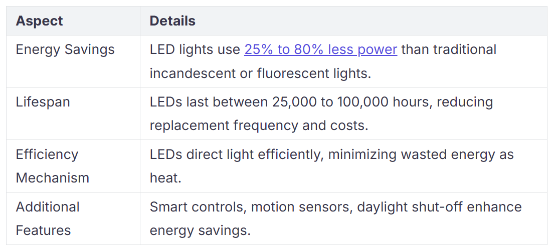 ການປ່ຽນໄປເຮັດໃຫ້ມີແສງສະຫວ່າງທີ່ມີສະພາບອາກາດທີ່ຊ່ວຍຊີວິດຊ່ວຍປະຢັດພະລັງງານແລະຊ່ວຍດາວເຄາະ. ໄຟແສງສະຫວ່າງກາງແຈ້ງໃຊ້ໄຟຟ້າສູງເຖິງ 80% ຫນ້ອຍກວ່າຫລອດໄຟເກົ່າ. ນີ້ຊ່ວຍປະຢັດເງິນໃຫ້ທ່ານໃນໃບບິນຄ່າແລະຊ່ວຍໃຫ້ແຜ່ນດິນໂລກ. ໄຟ LED ຫຼາຍມີຄຸນລັກສະນະທີ່ສະຫຼາດເຊັ່ນ: ເຊັນເຊີເຄື່ອນໄຫວແລະເວລາກາງເວັນປິດ. ຄຸນລັກສະນະເຫຼົ່ານີ້ຮັບປະກັນວ່າການເຮັດໃຫ້ມີແສງໄຟ LED ກາງແຈ້ງຂອງທ່ານເຮັດວຽກໄດ້ພຽງແຕ່ເມື່ອຕ້ອງການ, ປະຫຍັດພະລັງງານຫຼາຍຂຶ້ນ.