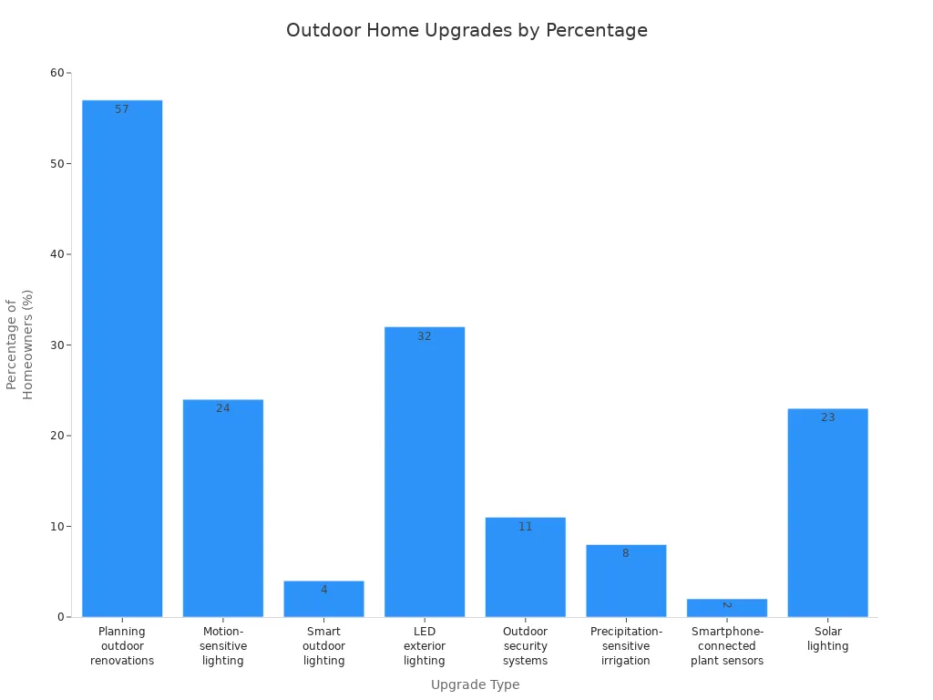 ທ່ານສາມາດໃຊ້ແສງໄຟ LED ຫຼາຍກ່ວາຫນຶ່ງຊະນິດເພື່ອເຮັດໃຫ້ເດີ່ນຂອງທ່ານເບິ່ງຫນ້າສົນໃຈ. ການປະສົມແສງທີ່ແຕກຕ່າງກັນຊ່ວຍໃຫ້ທ່ານເຫັນດີແລະເຮັດໃຫ້ພື້ນທີ່ຂອງທ່ານດີ. ປະຊາຊົນຈໍານວນຫຼາຍໃນປັດຈຸບັນເລືອກເອົາດິນຟ້າອາກາດ, ແສງຕາເວັນ, ຫຼື smart fixtures ສໍາລັບແບບແລະການນໍາໃຊ້ງ່າຍ.