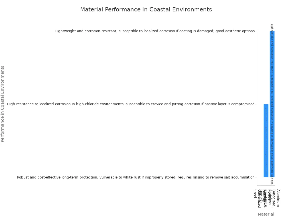 ຜູ້ຜະລິດໃຊ້ເສື້ອຄຸມຜົງຜົງສໍາເລັດຮູບແລະຝາປິດທີ່ຜະນຶກເຂົ້າກັນໄດ້ອີກຕໍ່ໄປ. ຄຸນລັກສະນະເຫຼົ່ານີ້ຊ່ວຍໃຫ້ແສງສະຫວ່າງທີ່ມີອາກາດຢູ່ລອດໄດ້, ອາກາດຊຸ່ມ, ແລະສີດເກືອ. ທ່ານສາມາດເບິ່ງວ່າວັດສະດຸທີ່ແຕກຕ່າງກັນເຮັດວຽກຢູ່ໃກ້ທະເລໃນຕາຕະລາງຂ້າງລຸ່ມນີ້: